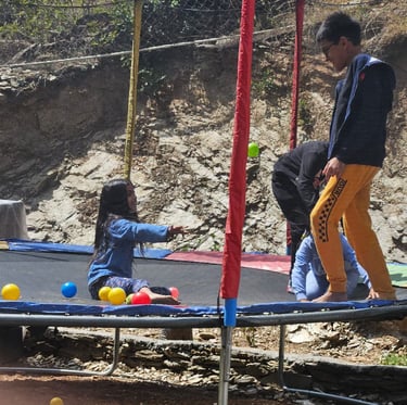 Kids up to 11 years can have a blast on the big bouncy & trampoline, while all ages can experience exciting rope adventures in our serene hilltop paradise.