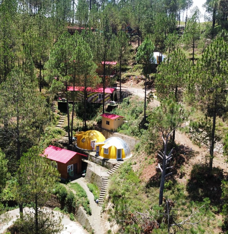 The villas provide breathtaking views of the majestic Himalayas, offering a serene and offbeat location. Each private villa is designed to blend luxury with nature, ensuring a tranquil and memorable stay.
